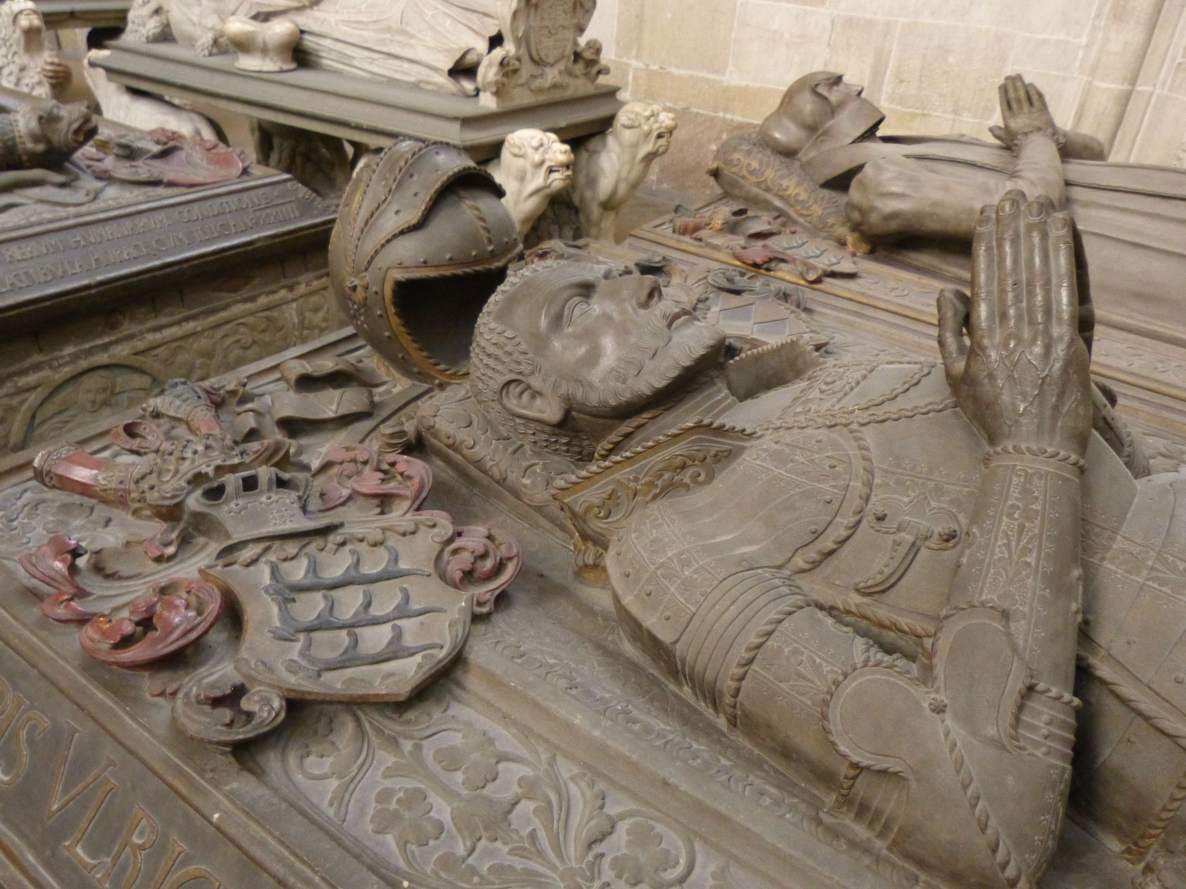 Das Grabdenkmal Herzog Ulrichs von Württemberg im Chor der Tübinger Stiftskirche mit den herrschaftlichen Hirschstangen. Die Grabplatte des Herzogs wird zudem von vier Hirschen getragen. © CC BY-SA 3.0.