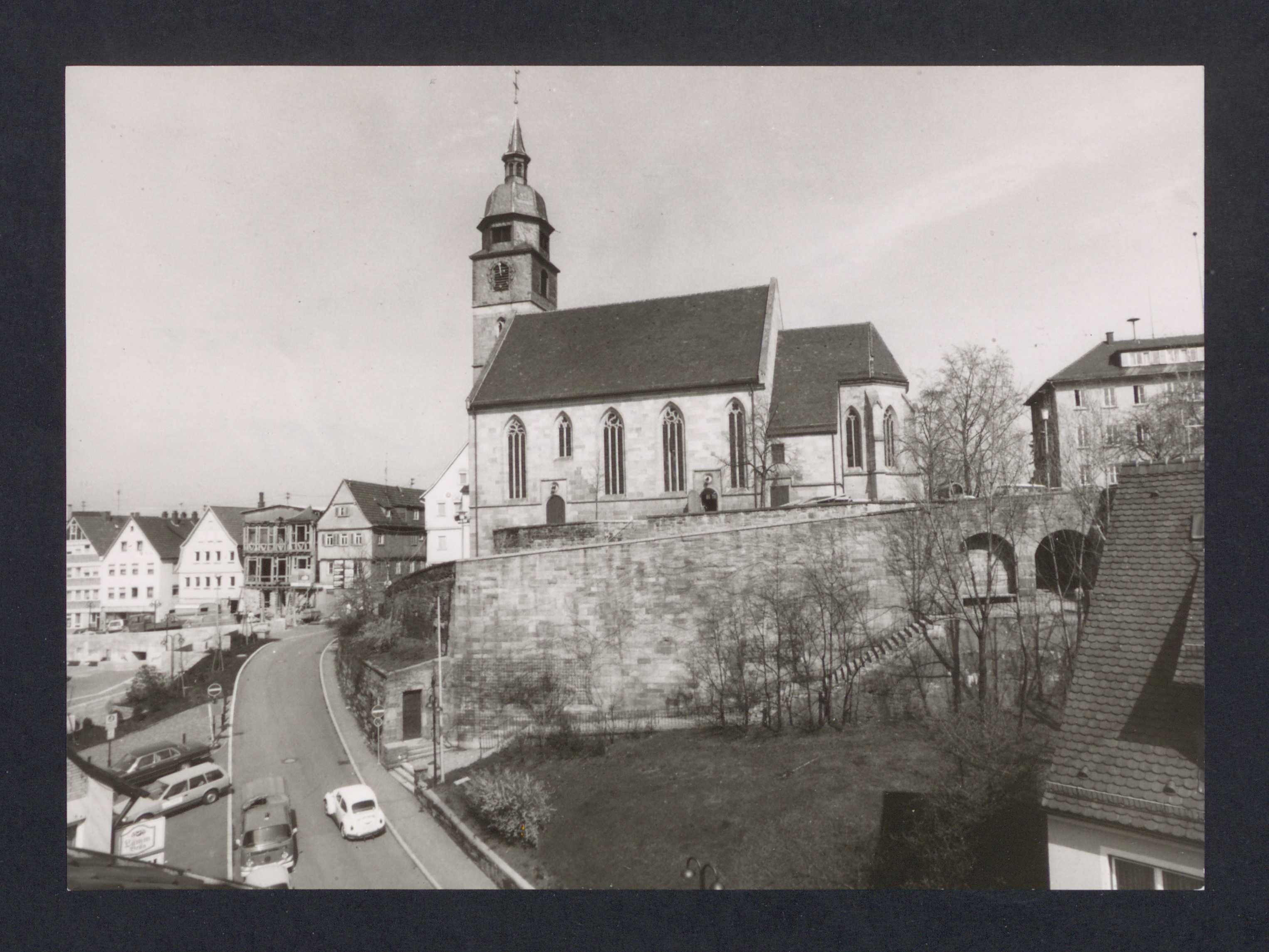 Der Wirkungsort des Böblinger Kaplans: Die Pfarrkirche St. Dionysius. Dort hatte Engelfried die Pfründe des St. Annenaltars inne, Aufnahme der Stadtkirche vom März 1983. © StadtA BB E2/7, Nr. 2088, Foto: Michael Schmidt.