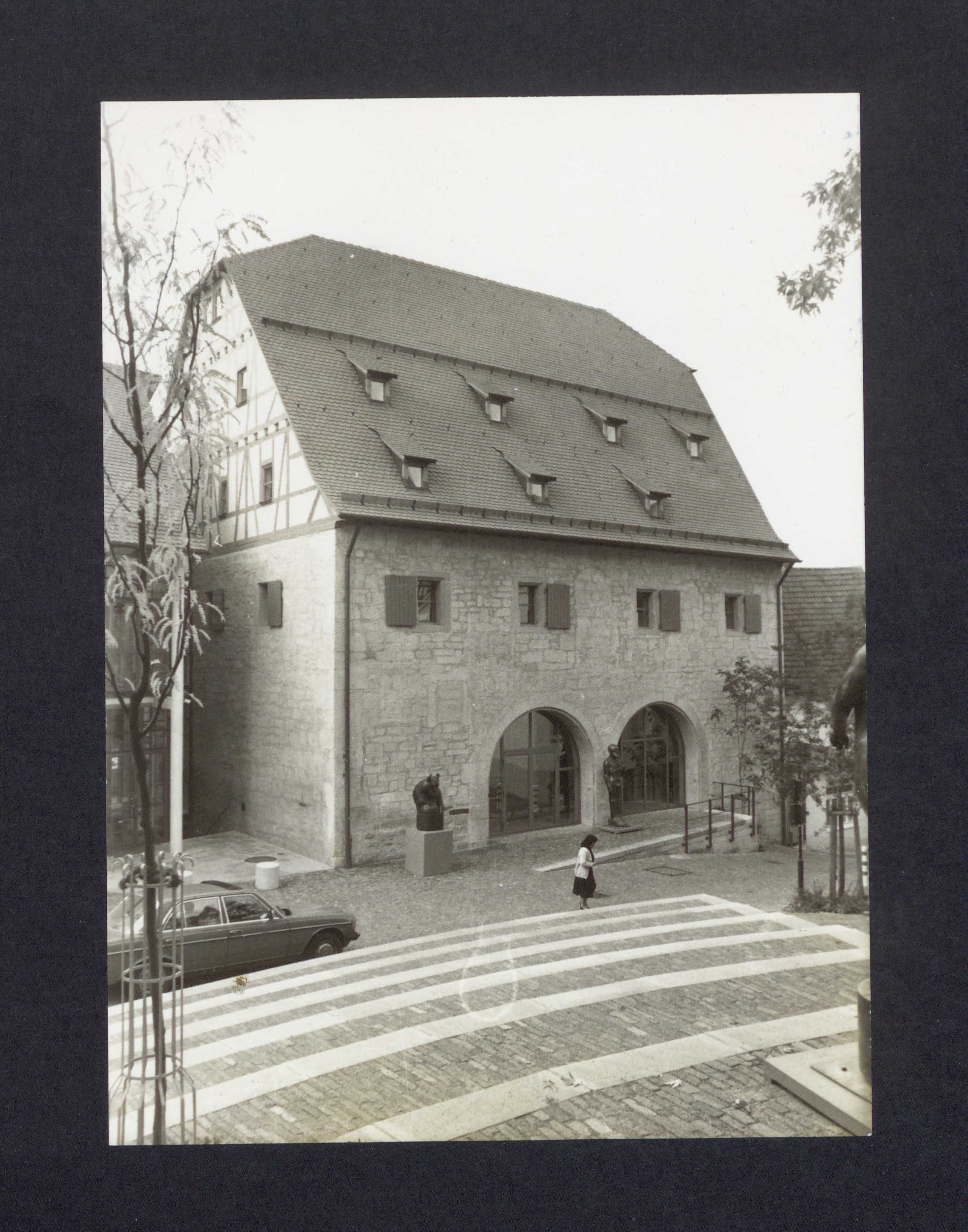 In der Böblinger Zehntscheuer wurden die Abgaben an die Kirche, der "Kirchenzehnt" gelagert. Errichtet wurde das Gebäude vom Kloster Hirsau, das auch hier in Böblingen kirchliche Befugnisse hatte. Die heutige Zehntscheuer wurde in den 1580er Jahren errichtet, zur Zeit des Bauernkrieges stand an gleicher Steller vermutlich ein Vorgängerbau, Aufnahme aus den späten 1980er Jahren. © StadtA BB E2/7 Nr. 5029.