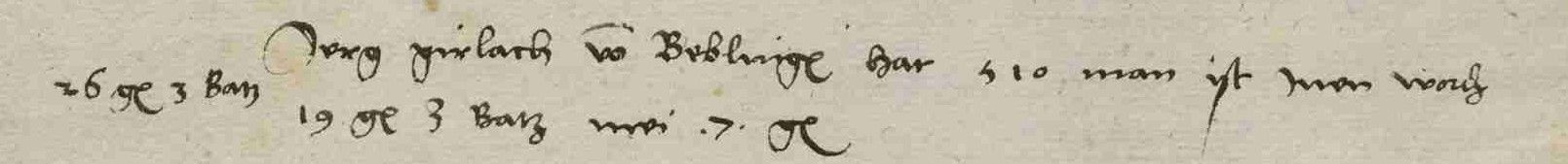 Böblinger Einkommensspitze: Jörg Gerlach besitzt laut "Herdstättenliste" des Jahres 1525 und einer Einschätzung der Regierung 800 Gulden zu versteuerndes Vermögen. Angegeben ist die Summe in römischen Zahlen [VIII c [hundert]]. © Landesarchiv Baden-Württemberg, Hauptstaatsarchiv Stuttgart A 54 a St. 26 Böblingen, Bild 7.