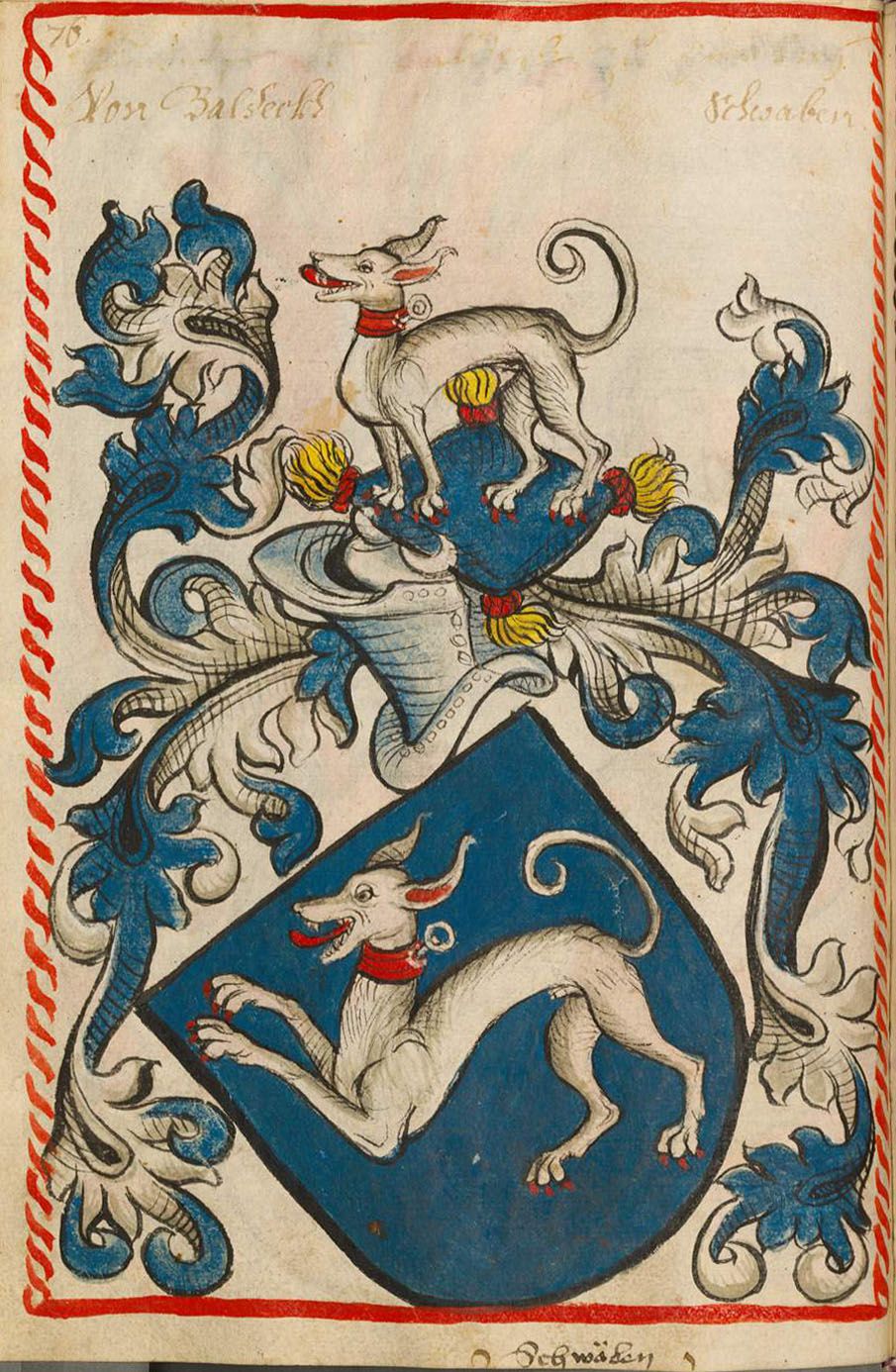 Das Wappen der Herren von Baldeck, Scheibler'sches Wappenbuch, älterer Teil, zwischen 1450 und 1480. © Bayerische Staatsbibliothek, Cod. Icon. 312 c.